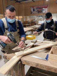 De eerste avond was Michaëla ook aanwezig en ze was onder de indruk van Bouwschool Breda. “Het is een grote werkplaats waar verschillende onderdelen van de echte bouwplaats zijn nagebootst. Alle materialen en fases die je op een bouwplaats tegenkomst zijn er te vinden. Het is daardoor een heel praktische opleiding, geen schoolbanken maar learning-on-the-job in de nagebootste omgeving. De enthousiaste en vakkundige instructeurs leggen uit en doen voor, daarna voeren de timmermannen de opdracht in koppels uit, dat wordt gecontroleerd door de instructeurs. De communicatie gaat in het Engels, met gebruik van Nederlandse en Roemeense vertalingen van diverse vaktermen. “
